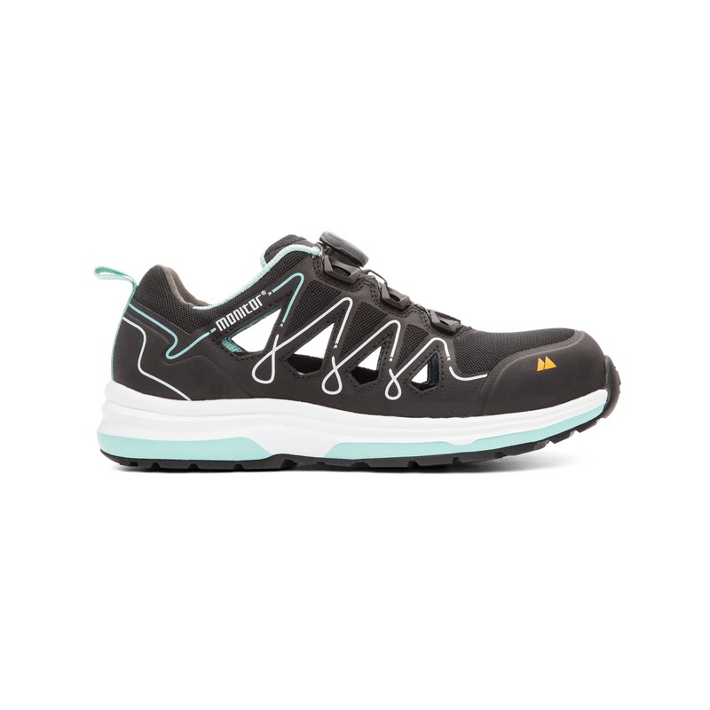 Grâce au système de serrage BOA Fit System, cette chaussure de sécurité s’ajuste rapidement et parfaitement, sans avoir besoin de lacer. Sa semelle intermédiaire en EVA ultra-légère assure une excellente résilience, une grande durabilité et une flexibilité optimale, entre autres qualités. Protection contre les décharges électrostatiques. Modèle femme. Doublure textile. Microfibre/textile. Semelle extérieure en EVA/caoutchouc. Embout de sécurité en aluminium et semelle intermédiaire sans métal. Profil bas.