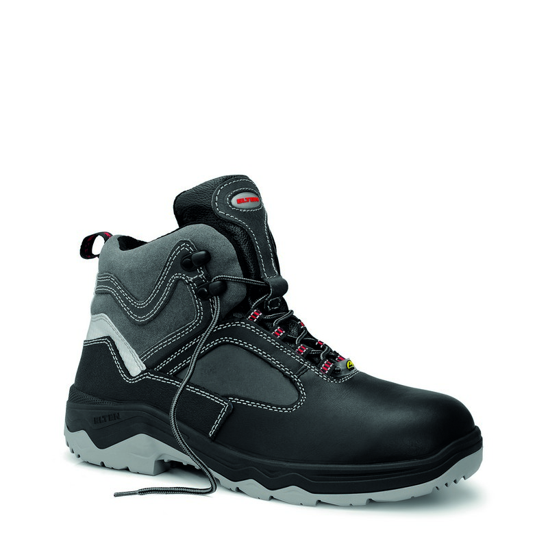 Résistant aux décharges électrostatiques. Doublure textile respirante. Tige en cuir de vachette pleine fleur/nubuck/microfibre. Semelle PU/PU. Embout en acier et semelle intermédiaire sans métal. Modèle montant.