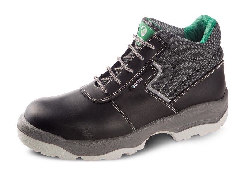 Inserts réfléchissants. Largeur généreuse. Cuir pleine fleur. Doublure textile douce. Semelle extérieure en PU double couche. Semelle intérieure amovible et confortable. Modèle montant. Embout et semelle intermédiaire anti-perforation sans métal.