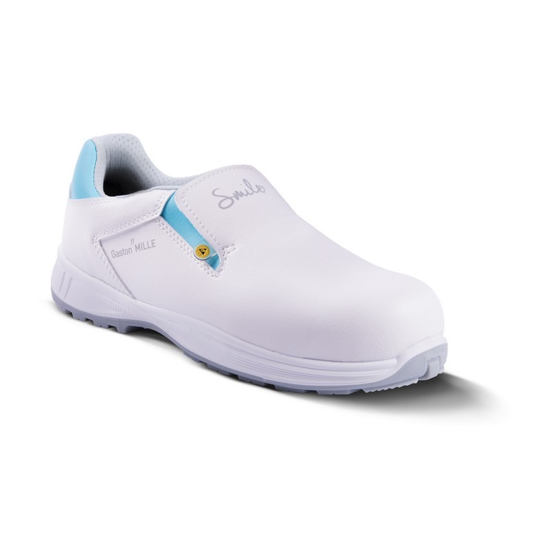 Modèle à enfiler. Doublure respirante en Poromax. Tige en microfibre. Semelle PU/PU. Embout en aluminium. Profil bas. Couleur blanche.