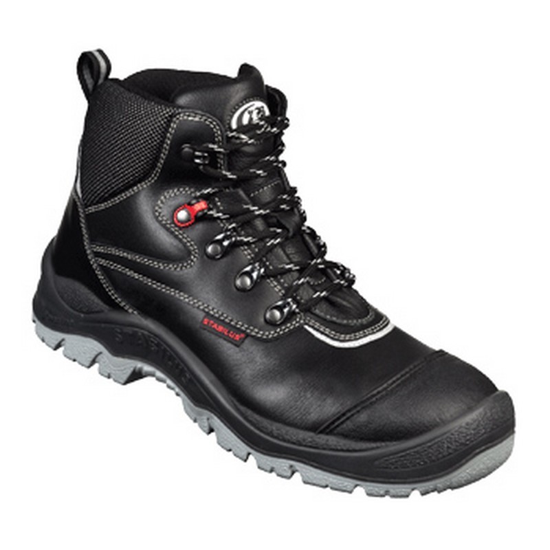 Coupe large et confortable. Éléments réfléchissants. Cuir de vachette pleine fleur. Doublure textile respirante. Semelle intérieure anatomique. Semelle extérieure en PU double couche. Embout de protection contre l’usure. Modèle montant. Semelle intermédiaire et embout en acier.