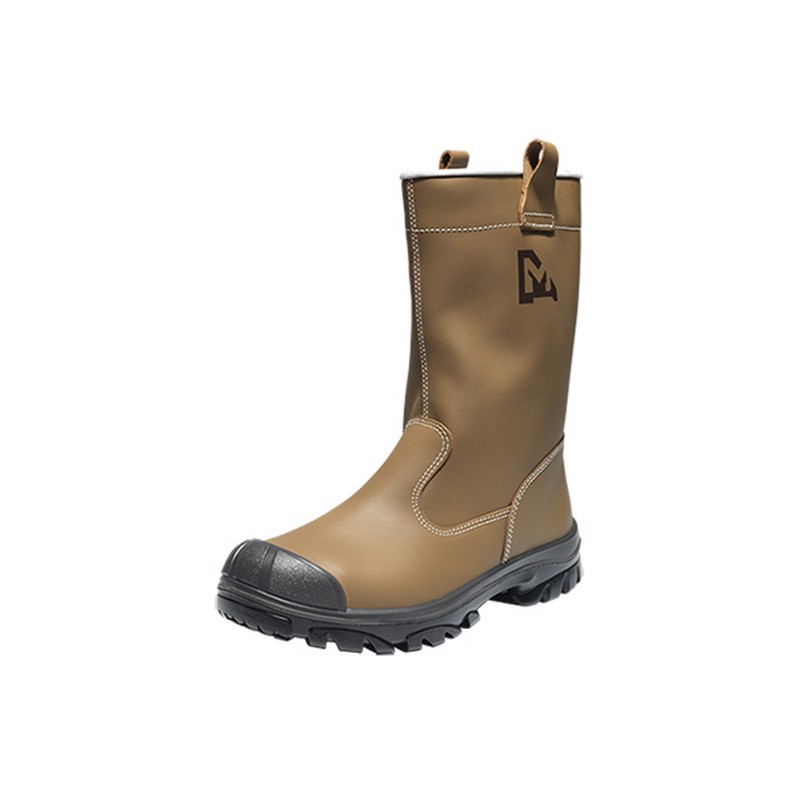 Doublée. Largeur D. Embout et semelle intermédiaire en acier. Couleur marron.