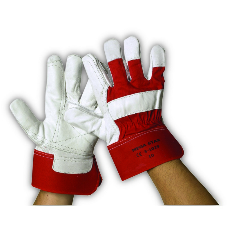 Gant doublé en cuir de vachette pleine fleur, renforcé pour pistolet, avec empiècement en coton rayé et manchette caoutchoutée de 7 cm. Idéal pour diverses applications.