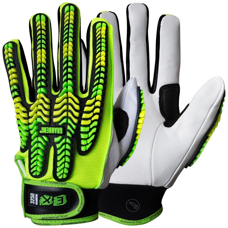 Résistant aux coupures. Protection contre les chocs. Grâce à la protection en caoutchouc thermoplastique sur le dos de la main et le bout des doigts, de nombreuses blessures sont évitées. Renfort entre le pouce et l’index. Fermeture Velcro ajustable.