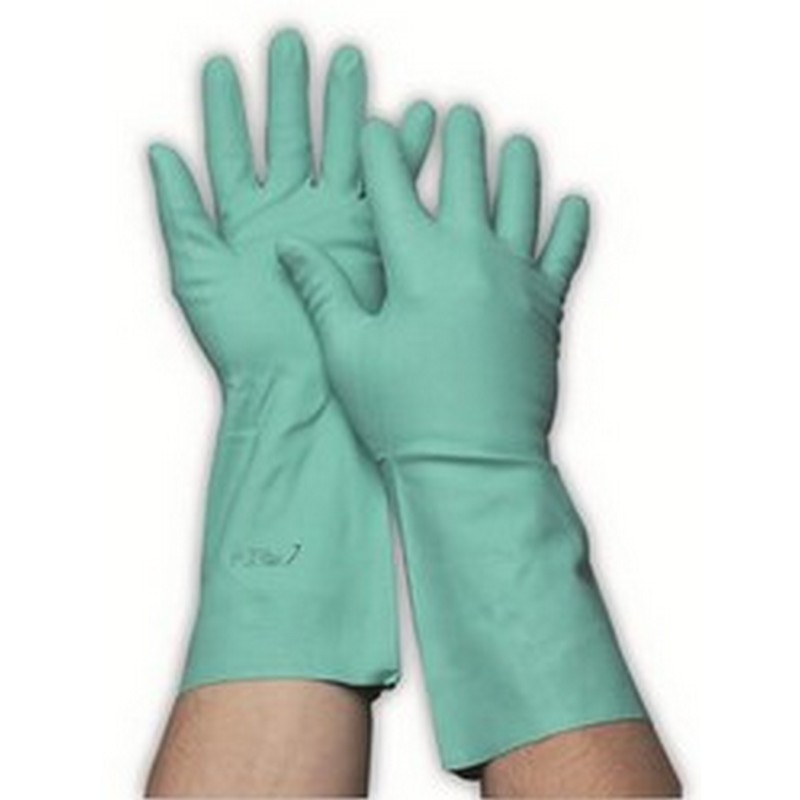 Très résistant aux produits chimiques. Antidérapant sur la paume. Doublure douce en coton floqué. Sans silicone. Couleur verte. Convient à l’industrie alimentaire.