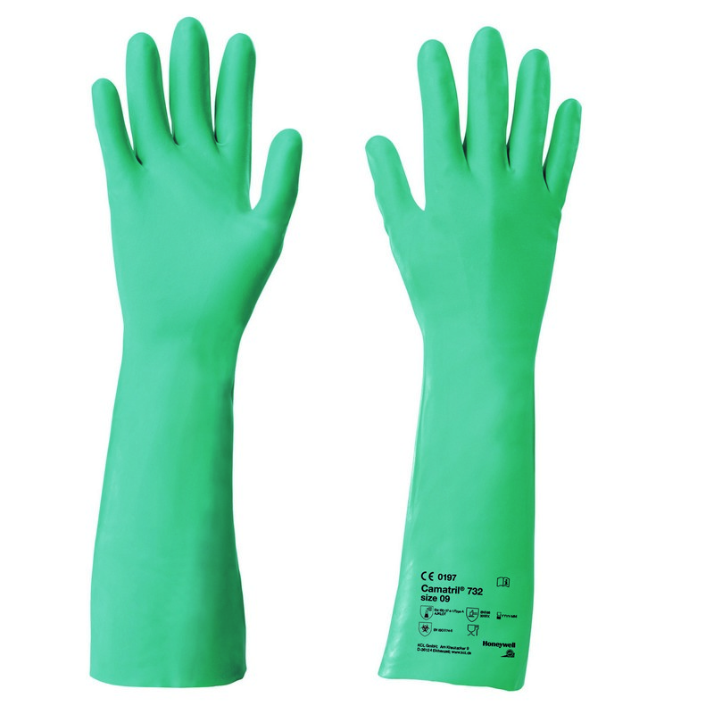 Résistant à de nombreux solvants et produits chimiques à base d’huile. Bonne résistance aux températures élevées. Bonne sensibilité tactile. Doublure en coton floqué pour un confort accru. Paume texturée pour une meilleure prise en main. Longueur : 39-41 cm. Épaisseur : 0,4 mm.