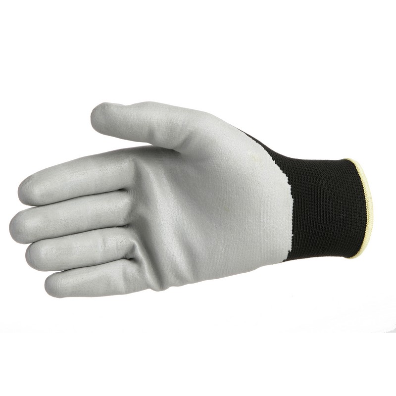 Dos aéré. Polyester avec revêtement en mousse de nitrile sur la paume. Résistant aux huiles.