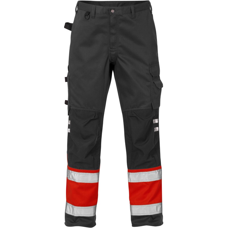 Tissu déperlant, oléofuge et résistant à la saleté. Deux poches latérales. Anneau en D à la ceinture. Deux poches arrière, dont une à rabat et fermeture Velcro. Poche sur la jambe avec rabat et fermeture Velcro, poche pour téléphone avec rabat et fermeture Velcro, anneau en D et porte-carte d’identité en plastique. Passant pour marteau. Poche pour mètre renforcée en CORDURA avec poche à outils, deux boutons et passants pour deux couteaux de menuisier. Genoux préformés. Poches genoux renforcées en CORDURA avec ouverture intérieure pour genouillères réglables en hauteur. Bas de jambes de pantalon renforcés en CORDURA. Homologué selon la norme EN 14404 (avec genouillères 124292) et la norme EN ISO 20471 classe 1.