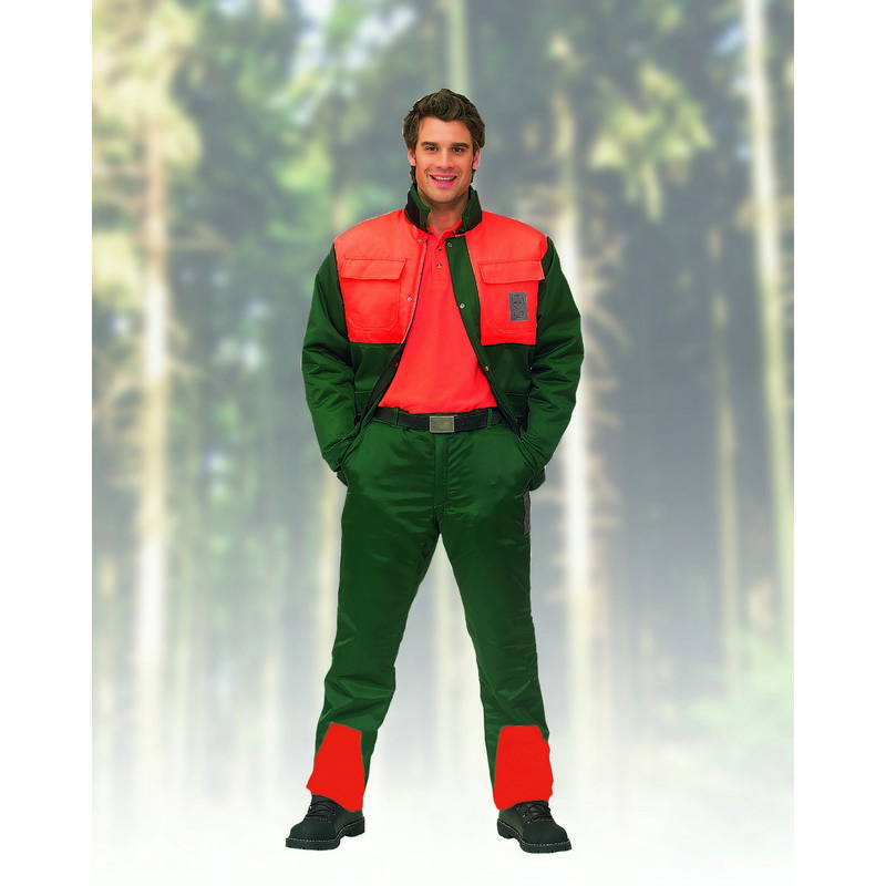 Protection avant des jambes ajustable au niveau des lombaires. Ceinture élastiquée. Deux poches latérales plaquées et une poche pour mètre. Une poche arrière plaquée avec rabat et fermeture Velcro. Tissu résistant à l’abrasion, déperlant et anti-salissures.