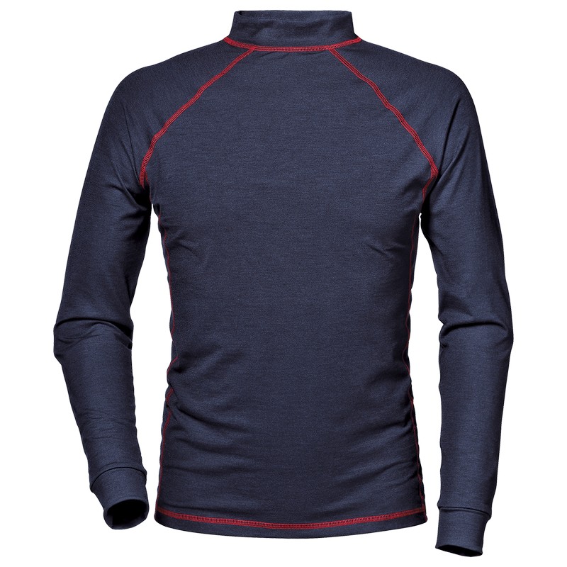 T-shirt ignifugé et antistatique à col montant rond et manches longues. Protège également contre la chaleur des arcs électriques. Coutures rouges contrastantes.