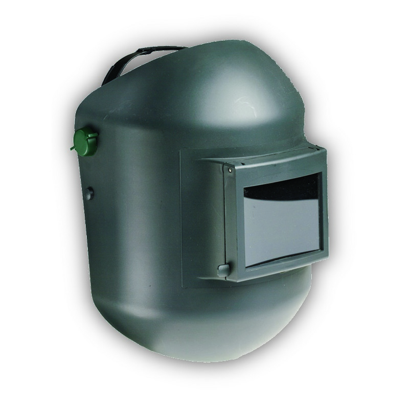 Casque de soudage léger et confortable. Conception pensée par des soudeurs. Grande taille. En plastique. Bandeau réglable. Porte-lunettes relevable 50 x 108 mm. Avec verres de soudage teintés 10.