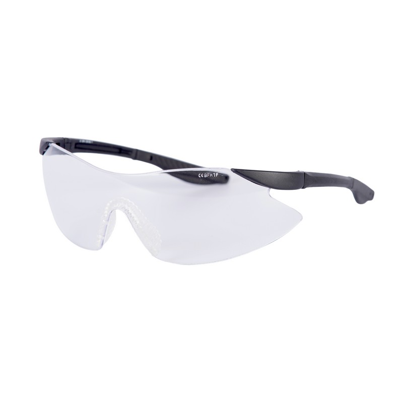 Sportives et tendance. Design moderne grâce au verre continu. Extrêmement légères. Monture en nylon noir. Offrent une bonne protection latérale. Plaquettes de nez souples. Verres en polycarbonate transparent. Résistantes aux rayures et antibuée.