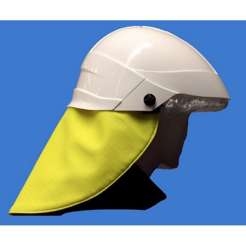 Tour de cou de protection contre la chaleur industrielle et les arcs électriques, classe 2 (selon IEC 61482-1-2 cl2). À fixer sur un casque de sécurité. Jaune fluorescent. Sans pièces métalliques. Double (2 couches cousues ensemble).