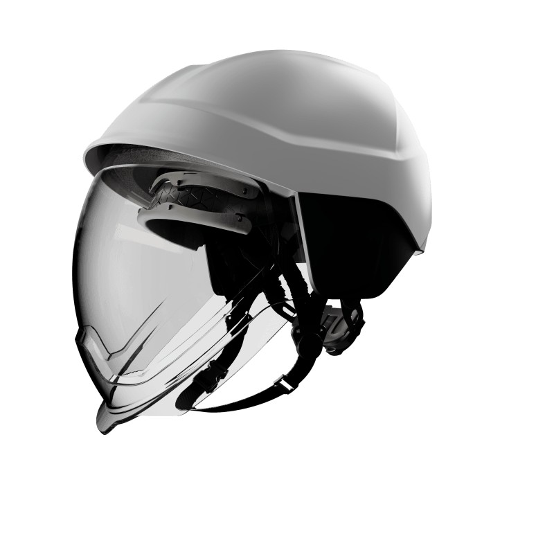 Casque avec visière intégrée et protection contre les arcs électriques. Coiffe textile 6 points avec molette de réglage. Bandeau anti-transpiration en PU. Taille ajustable 63-62 cm. Ce casque est conçu pour protéger la tête contre les chocs mécaniques et électriques. La visière protège des risques liés aux installations sous tension et se rétracte complètement dans le casque lorsqu’elle n’est pas utilisée. Jugulaire 4 points à ouverture rapide. Casque en ABS. Visière en polycarbonate. La visière est résistante aux rayures et antibuée. GS-ET 29 jusqu’à 4 kA – APC 1 (classe de protection contre les arcs électriques 1).